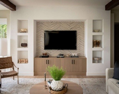 Brass traditional lamps complement modern recessed lighting, creating layered illumination that adapts to various activities and moods.