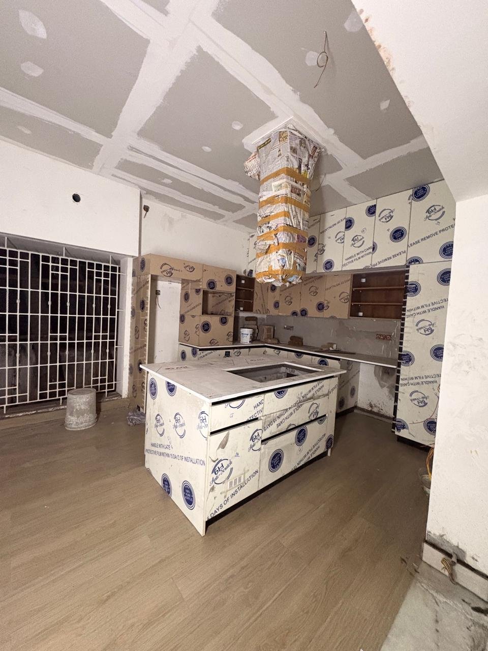 A modern kitchen that respects traditional Kerala cooking while incorporating contemporary conveniences. Custom cabinetry in warm wood tones complements granite countertops.